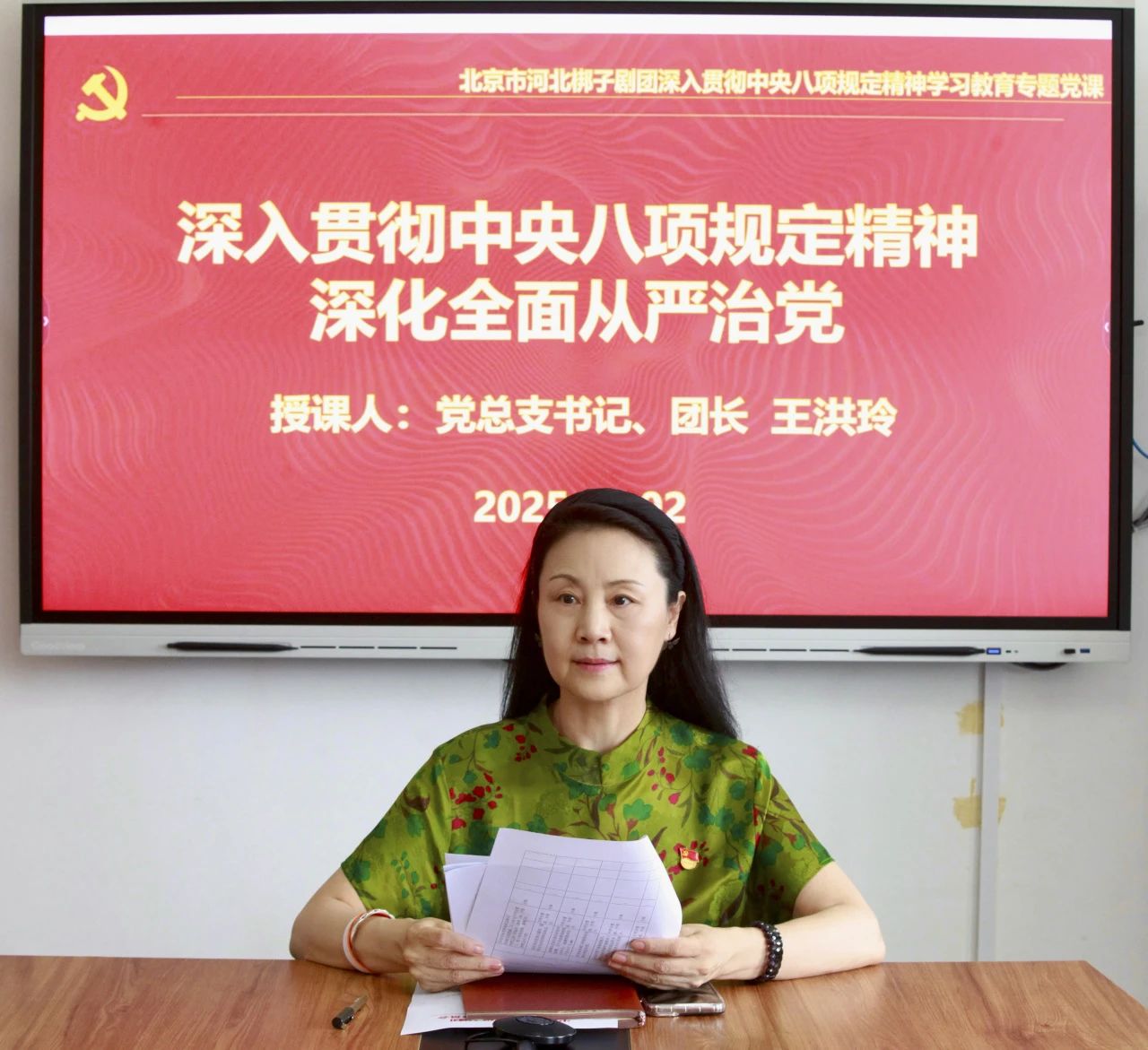 黨總支書記、團長王洪玲同志以《深入貫徹中央八項規定精神,深化全面從嚴治黨》為題講授專題黨課,從準確把握中央八項規定核心要義,對標對表劇團在貫徹中央八項規定精神方面的現狀、推進中央八項規定精神在劇團堅定致遠三個方面,強調中央八項規定精神是新時代作風建設的根本遵循,作風建設永遠在路上。要求全體黨員要以中央八項規定精神為指引,把“嚴”的要求、“實”的作風貫穿劇團工作全過程,用優良黨風引領創作導向、用清風正氣涵養文藝生態,為推動劇團高質量發展貢獻力量。