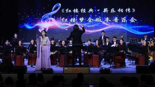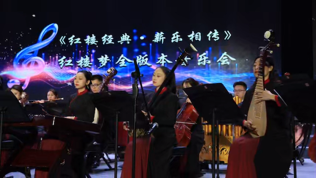 《紅樓經典·薪樂相傳》紅樓夢全版本音樂會演出現場,婉轉樂聲在漠河市宣傳文化中心緩緩流淌。