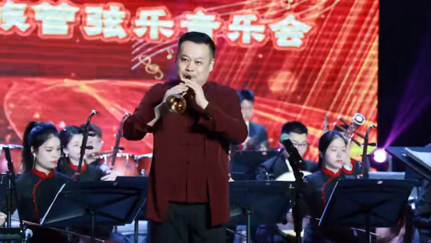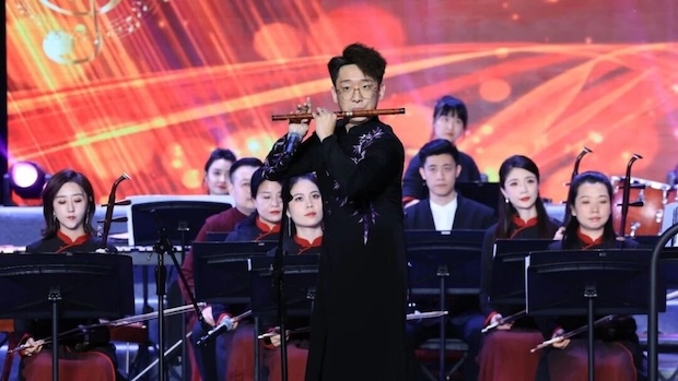 演出中亮點頻現:笛子演奏員走下舞臺,與觀眾近距離互動,臺上臺下呼應不斷,氣氛熱烈;《百鳥朝鳳》樂聲悠揚間,即興融入“大姑娘美”舞蹈,靈動舞姿與樂曲相融,為現場再添亮色。