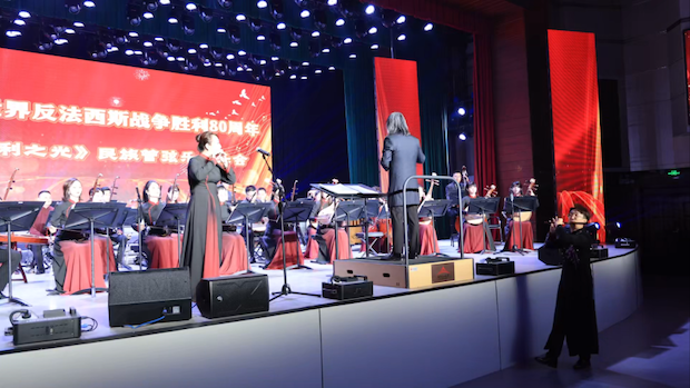 演奏員們以恢弘的民族管弦樂,回溯中華民族從戰爭陰霾走向勝利榮光的壯烈史詩,獻禮80周年。