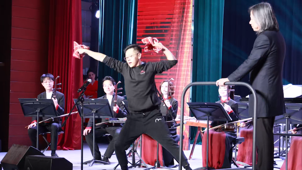 北京民族樂團副團長宋藝博以打擊樂領奏登場,演繹經典樂曲《龍騰虎躍》。本次漠河演出中,宋藝博團長更兼任本場演出導演,結合漠河民俗特色,在樂曲編排上融入諸多創意靈感,以專業創排與精彩領奏,盡顯誠意與實力。