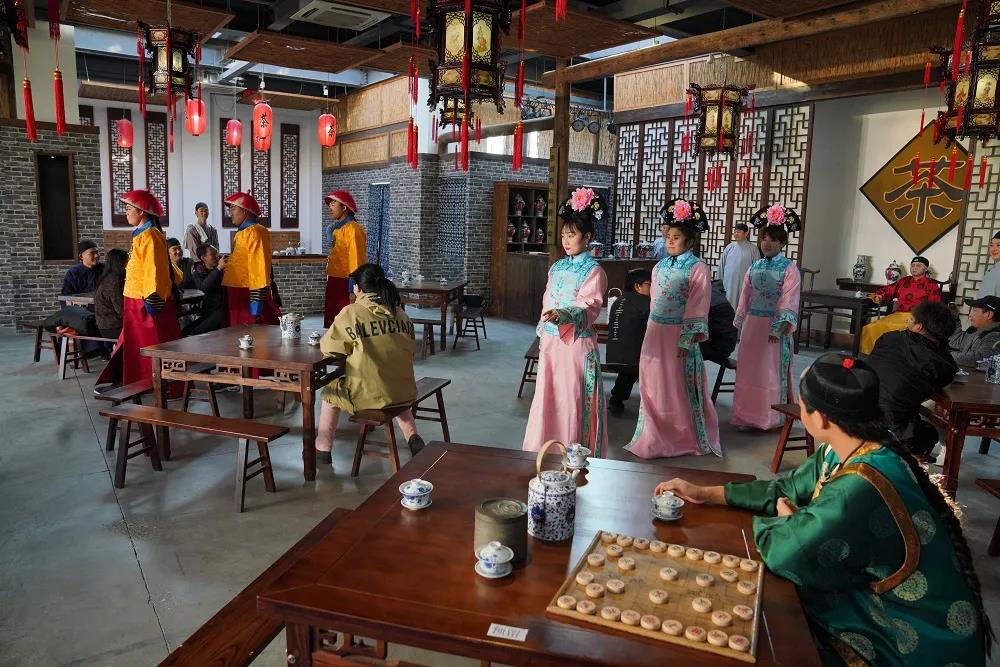2020年,北京市曲劇團創新之作——北京曲劇浸沒式《茶館》將經典重構,以“浸沒式”的演出形式亮相通州臺湖金福濕地魚匯慶禮堂。真實的茶館場景、經典的故事再現、有趣的互動環節,讓游客感受“你我皆是戲中人”的新體驗!