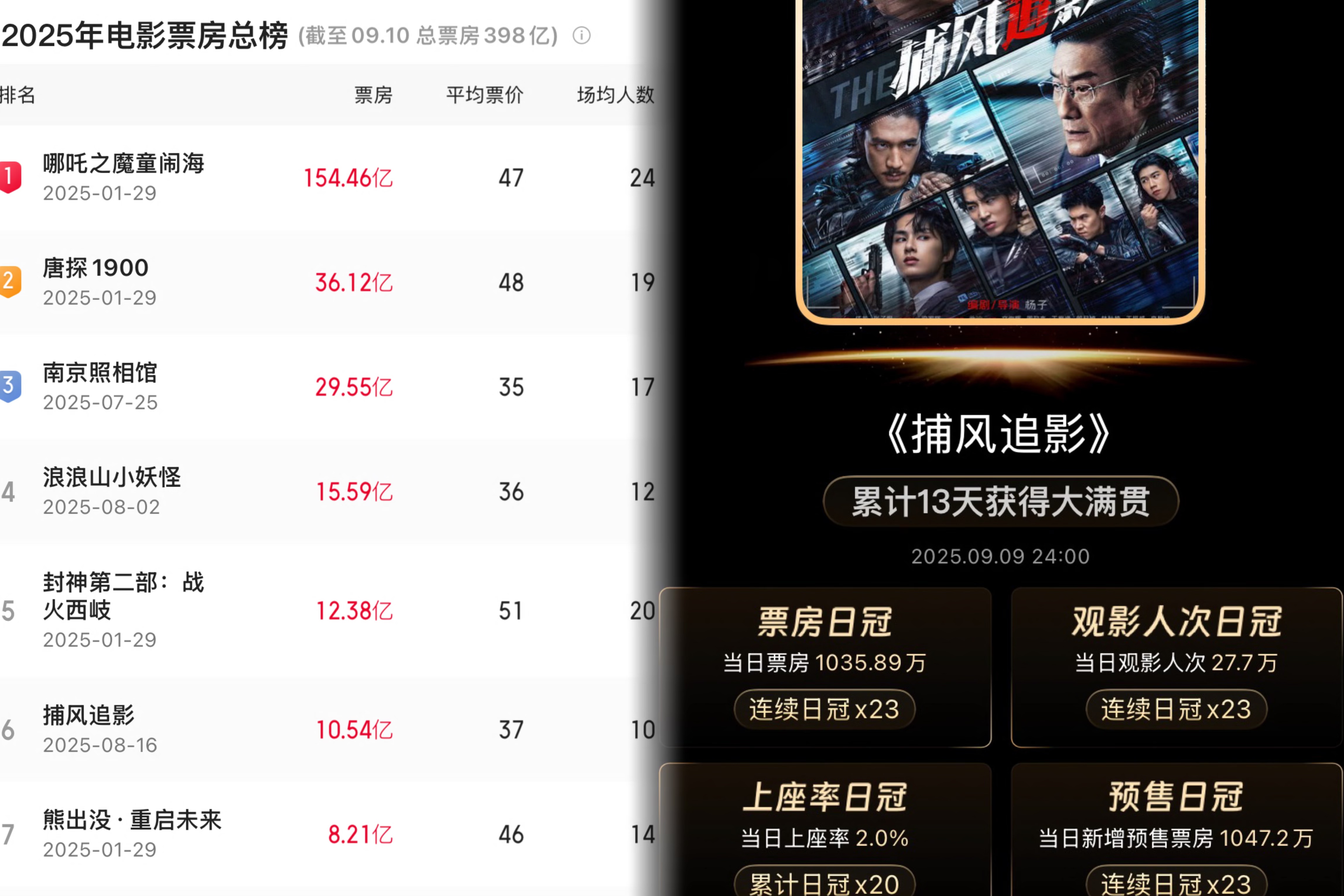 2025年暑期檔已落下帷幕,據國家電影局發布的數據顯示,今年暑期檔總票房為119.66億元(含服務費),同比去年提升2.76%;總觀影人次3.21億,同比增長12.75%。3個月的檔期共有135部中外影片上映,在激烈的市場競爭中“北京電影”板塊單位新影聯影業(院線)作為主出品的動作犯罪類影片《捕風追影》在8月16日上映,截至檔期結束,16天時間創造票房8.8億元,成為檔期后程票房扛鼎之作,引發行業、觀眾高度關注與熱議,斬獲檔期票房季軍。截至9月9日影片票房10.52億元,累積13天獲得票房、人次、上座率、預售日冠“大滿貫”。票房暫列年度第6。