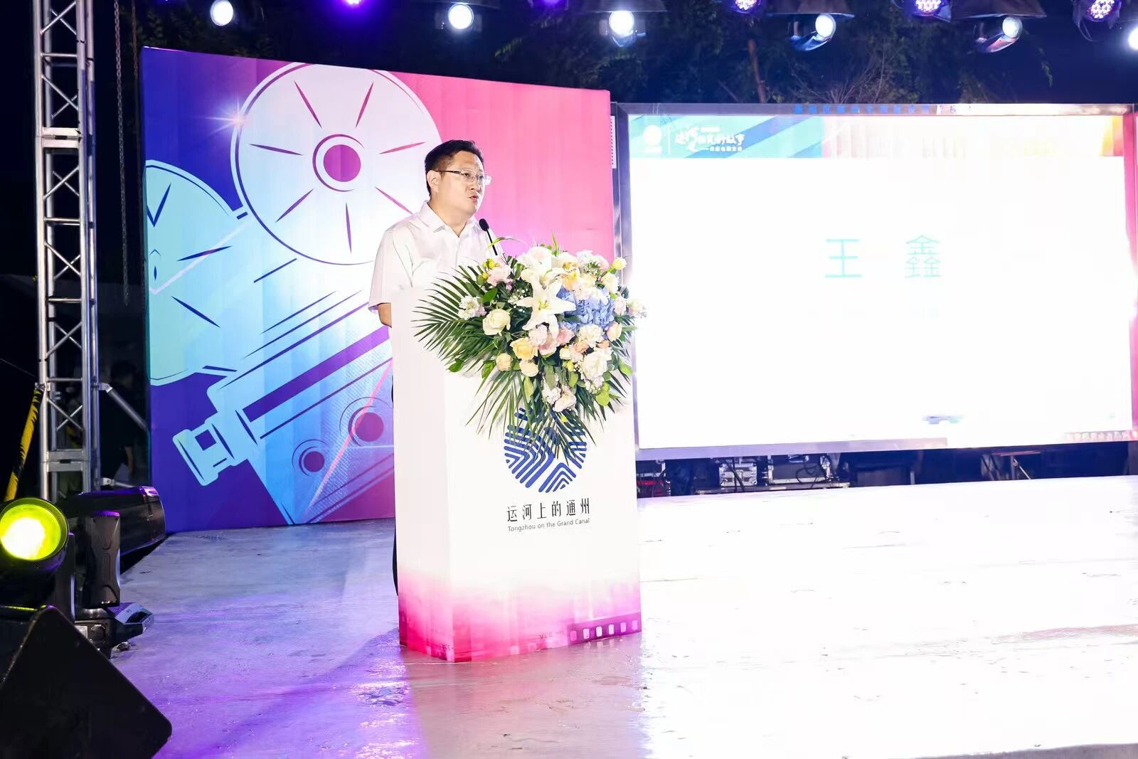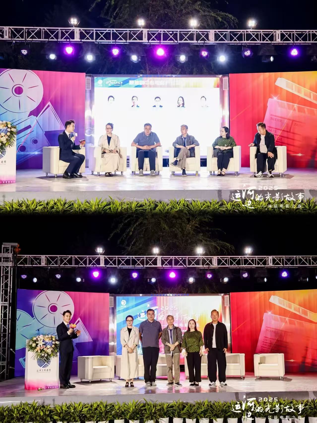 啟動儀式環節,領導們上臺,隨著6根象征光影與希望的燈柱依次點亮,“運河邊的光影故事”公益電影之夜主題活動正式啟動。領導與嘉賓合影留念,定格了這推動通州文化事業發展的重要時刻。