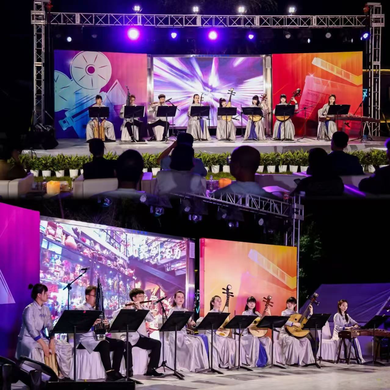在最后的“光影樂章?視聽享受”環節,北京民族樂團演奏《好春光》《滿江紅》《我和我的祖國》等經典曲目,燈光與音樂交織,營造出浪漫、溫馨的氛圍,使來賓沉浸式享受視聽雙重盛宴。隨著表演結束,啟動儀式圓滿結束。