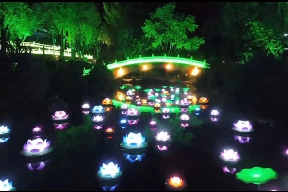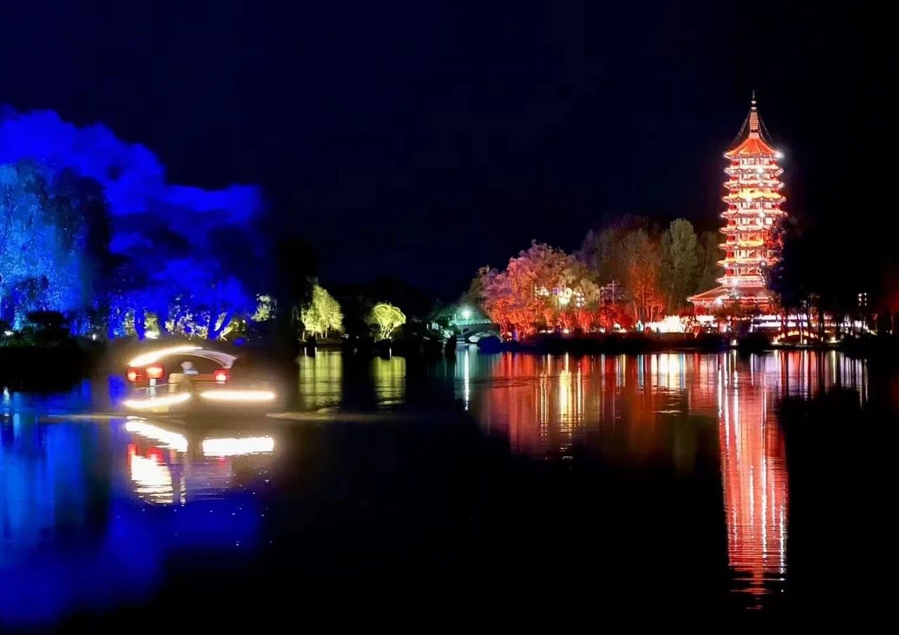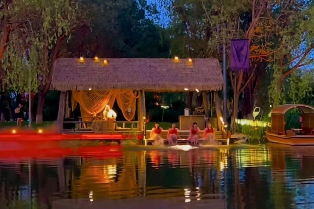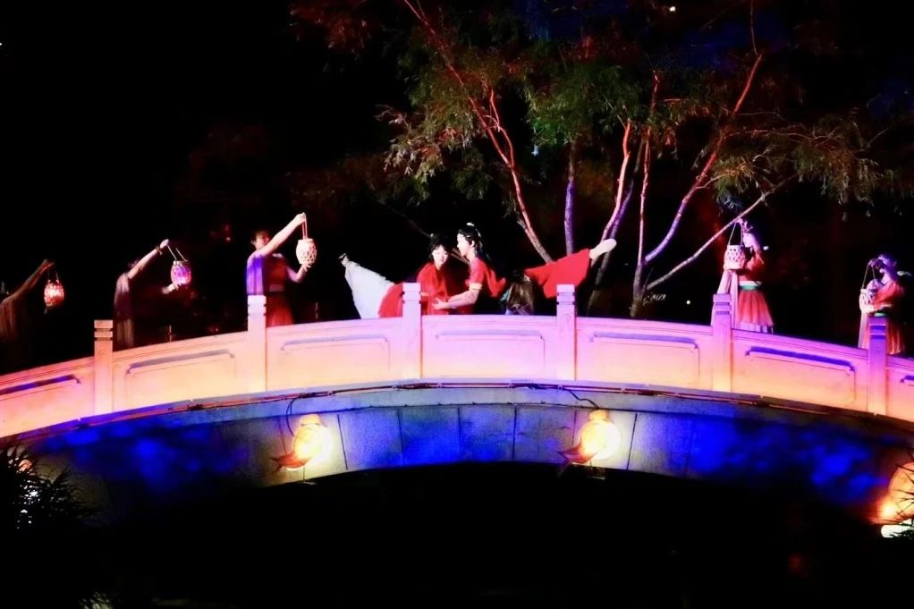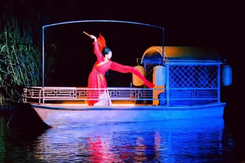沉浸式民族風情生態實景演出“媯河夜畫”位于延慶區地標建筑夏都大橋東側,利用東湖公園湖泊及周邊旖旎的自然風光,以延慶家喻戶曉的媯水女傳說為基礎,精彩演繹媯川戲水、初見媯水女、媯水祭祀、鵲橋相會、寶塔燈光秀、又見媯水女、時空穿梭、媯川豐收等內容,并融入燈光、置景、全息投影等多媒體特效,營造出“船在景中游、船為游中景”的意境,打造多點式、多元化的夜間消費場景。每周五、周六及法定節假日的晚8點至10點上演。