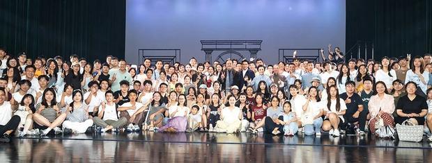 《雷雨》演出結束后,北京航空航天大學杭州國際校園的中外大學生與演員合影