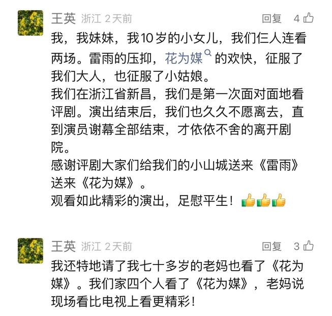 回顧巡演歷程,每一站都留下了難忘的印記:鄭州站中州影劇院內,京豫情深的文化共鳴;紹興新昌尹桂芳大劇院里,評劇與越劇的深度對話;南京紫金大劇院中,古典與現代的藝術碰撞;杭州苕溪大劇院內,傳統與創新的完美融合。四站演出,不僅展現了《花為媒》的幽默詼諧、《雷雨》的深刻厚重,更通過這些經典作品,讓各地觀眾感受到評劇藝術的豐富多彩。