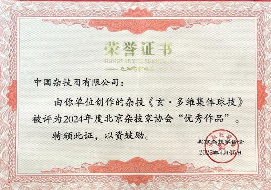 4月15日上午,在北京雜技家協會第六屆理事會第二次會議現場傳來捷報——中國雜技團有限公司憑借卓越的藝術成就與行業貢獻,在2024年度評選中一舉斬獲“優秀團體會員單位”“優秀個人會員”“優秀作品”三大類獎項,這份沉甸甸的榮譽,既是對過去一年奮斗成果的嘉獎,亦是為即將到來的75周年慶典獻上的一份厚禮。