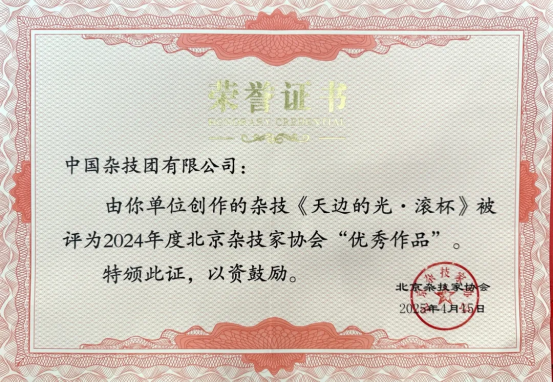 北京市文聯黨組書記、常務副主席馬新明對北京雜協2024年工作成效給予充分肯定。2024年,品牌活動特點突出,精品創作譽滿國際,人才隊伍青藍相繼,為首都雜技事業高質量發展貢獻了力量。北京市文聯副主席、北京雜技家協會主席李馳表示, 2025年我們要圍繞首都文化建設的目標定位和發展方向,把握首都雜技魔術發展機遇與優勢,進一步加強政治理論引導、專業人才培養、區域專業交流,銳意進取、勇攀高峰,扎實推進各項工作。一、榮耀時刻 實力成就高光