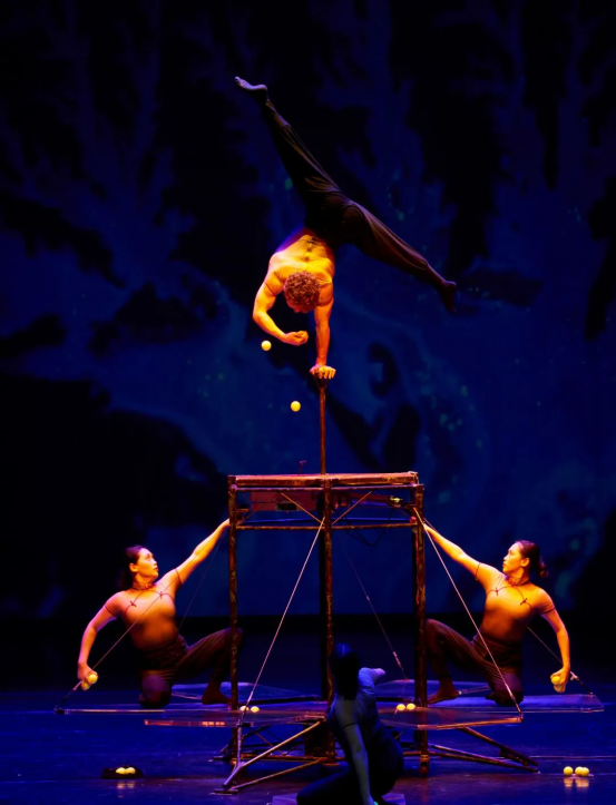 《玄》融合東方哲學與科技光影,演員在立體舞臺上精準控球,構建“天圓地方”的奇幻意境,開創雜技與多媒體交互的新范式。