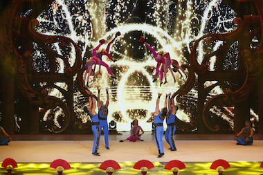 這是充滿神奇的雜技晚會,讓飛天神女穿越古今,九重國香連綴成詩。