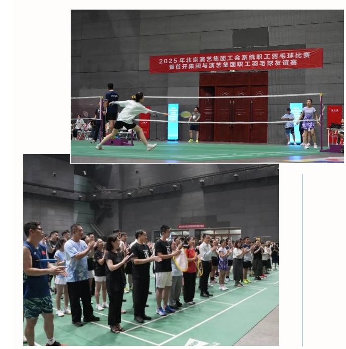 簽約儀式后,一場別開生面的職工羽毛球賽在國家體育館副館火熱開賽。北京演藝集團黨委書記、董事長張金玲致辭并宣布“2025年北京演藝集團工會系統職工羽毛球比賽暨首開集團與演藝集團職工羽毛球友誼賽”正式開幕。