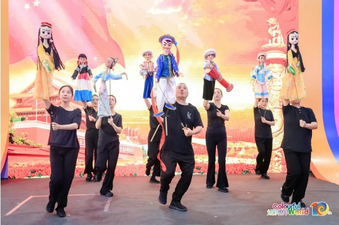 中國木偶藝術劇院帶來的木偶劇《民族大聯歡》,演員們憑借精湛的木偶操控手法,讓身著各色傳統民族服飾的木偶在舞臺上“載歌載舞”,現場觀眾沉浸在熱烈氛圍中,紛紛拍照留影。